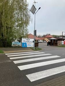W ramach zadania przewidziane jest doświetlenie przejścia dedykowanym oświetleniem LED, odtworzenie oznakowania poziomego grubowarstwowego w kolorze biało czerwonym, zastosowanie płyt chodnikowych dotykowych, zastosowanie aktywnego znaku D-6 przejście dla pieszych „kroczący ludzik”.